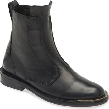 Simple details yield a refined appearance in this bootie that's shaped from lambskin leather.