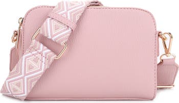 Multiple zippered compartments keep you organized with a compact vegan-leather crossbody fitted with a wide, comfortable webbing strap.