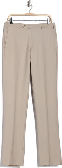 Worsted-wool twill brings polish and versatility to dress pants styled with traditional flat-front construction in a tailored fit that sits comfortably just above the hips. Crisp creases down the legs add smart detailing that complements any formal or semiformal look.