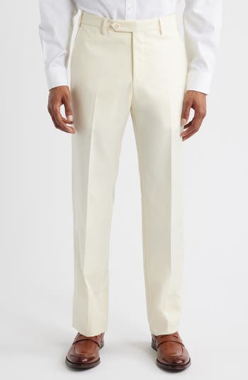Worsted-wool twill brings polish and versatility to dress pants styled with traditional flat-front construction in a tailored fit that sits comfortably just above the hips. Crisp creases down the legs add smart detailing that complements any formal or semiformal look.