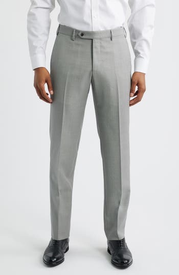 Stand tall in versatile dress pants cut from finely woven wool sharkskin and perfected by a flat front and slightly tapered legs.