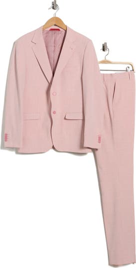 Elevate your wardrobe with this pink solid notched-lapel suit cut in a trim fit with comfortable stretch.