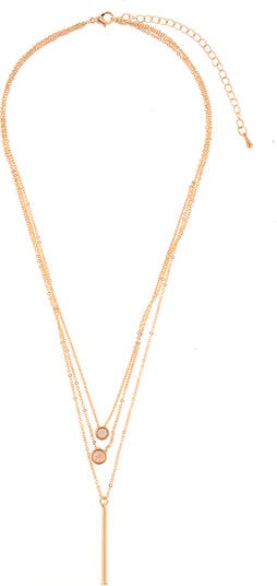 Give your look a special-occasion sparkle with a layered chain necklace sparkling with a bar and crystal pendants.