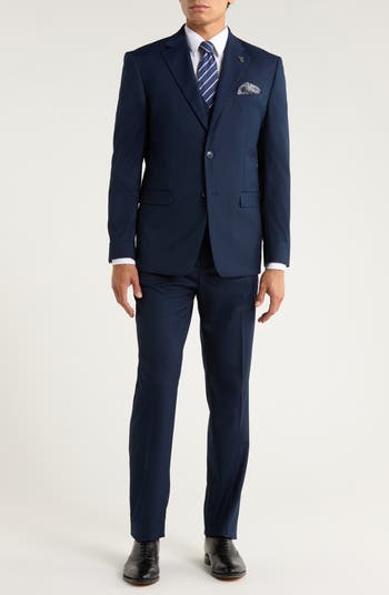 Lightweight mélange distinguishes a solid three-piece suit crafted with an optional vest to help you modify your look and formality. The pleated trousers complement the traditional detailing to keep the silhouette crisp and clean.