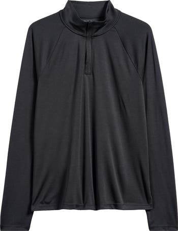 Sporty raglan sleeves bring structure to this lightweight pullover topped with a polished stand collar.