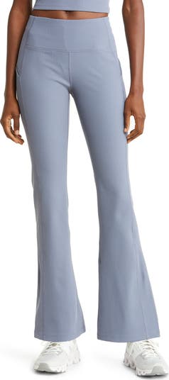 Pose, plié or lounge in these softly ribbed pants designed with a high waistband and flared hems.