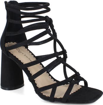 A squared toe modernizes the look of a signature cage sandal set on a towering heel that brings confidence to every stride.