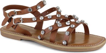 A strappy vamp defines this sun-ready sandal embellished with sparkly rhinestone accents.
