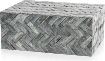 Whether displayed on its own or stored with trinkets, this lidded box features a herringbone bone design for a contemporary addition to your home.