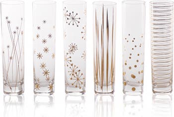 This set of six champagne flutes is festively decorated to toast the holiday season and a brand new year.