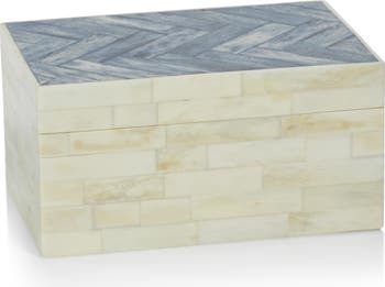 Safely store your keepsakes and jewelry in this decorative box with bone inlay in a herringbone design to make it an elegant addition to your home.