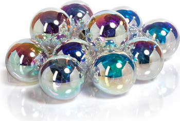 A strand of lights defined by ornament-inspired bulbs with an iridescent finish add a modern take to your holiday decor.