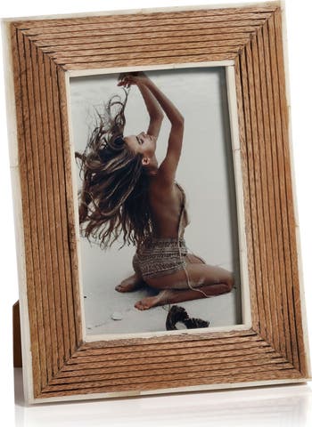 Showcase your favorite memory in this textured mango wood frame accented with buffalo bone trim.