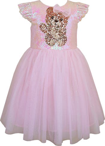 A sequined bear brings kid-approved charm to a tutu dress that makes a perfect go-to for upcoming events.