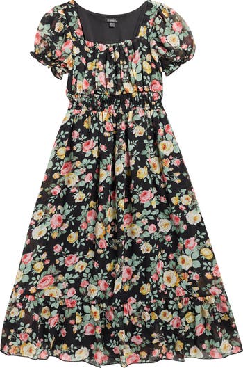 They'll love the puff sleeves and smocked waist of this twirl-worthy dress covered in bright blooms.