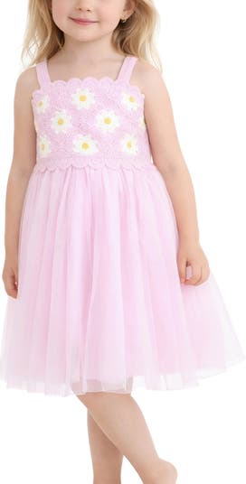 Your little one will feel their finest in this tutu dress topped with an open-knit, flower-pattern bodice for party-perfect style.