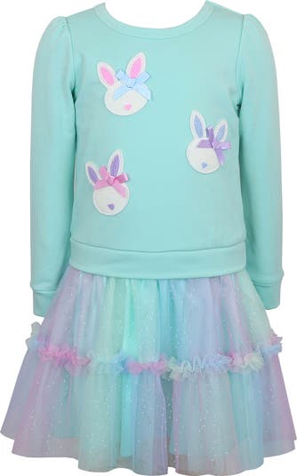 Your little sprout will fill in love with the shimmer of sequins over the long-sleeve knit bodice and foil sparkles over the tutu skirt of a festive dress.