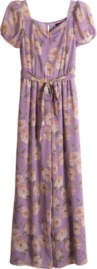 Get your favorite girl all dolled up for the next event with this pretty floral print maxi dress featuring puff sleeves and a waist tie belt.
