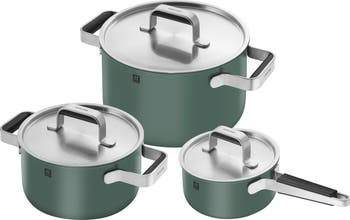 Includes: 1.6-quart saucepan with lid, 3-quart stew pot with lid, 6-quart Dutch oven with lid.