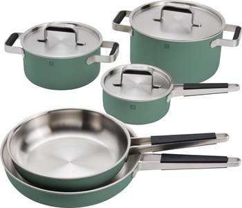 This stainless steel cookware set is with a colorful exterior ceramic coating is perfect for stir frying veggies or searing meat is a true kitchen workhorse.
