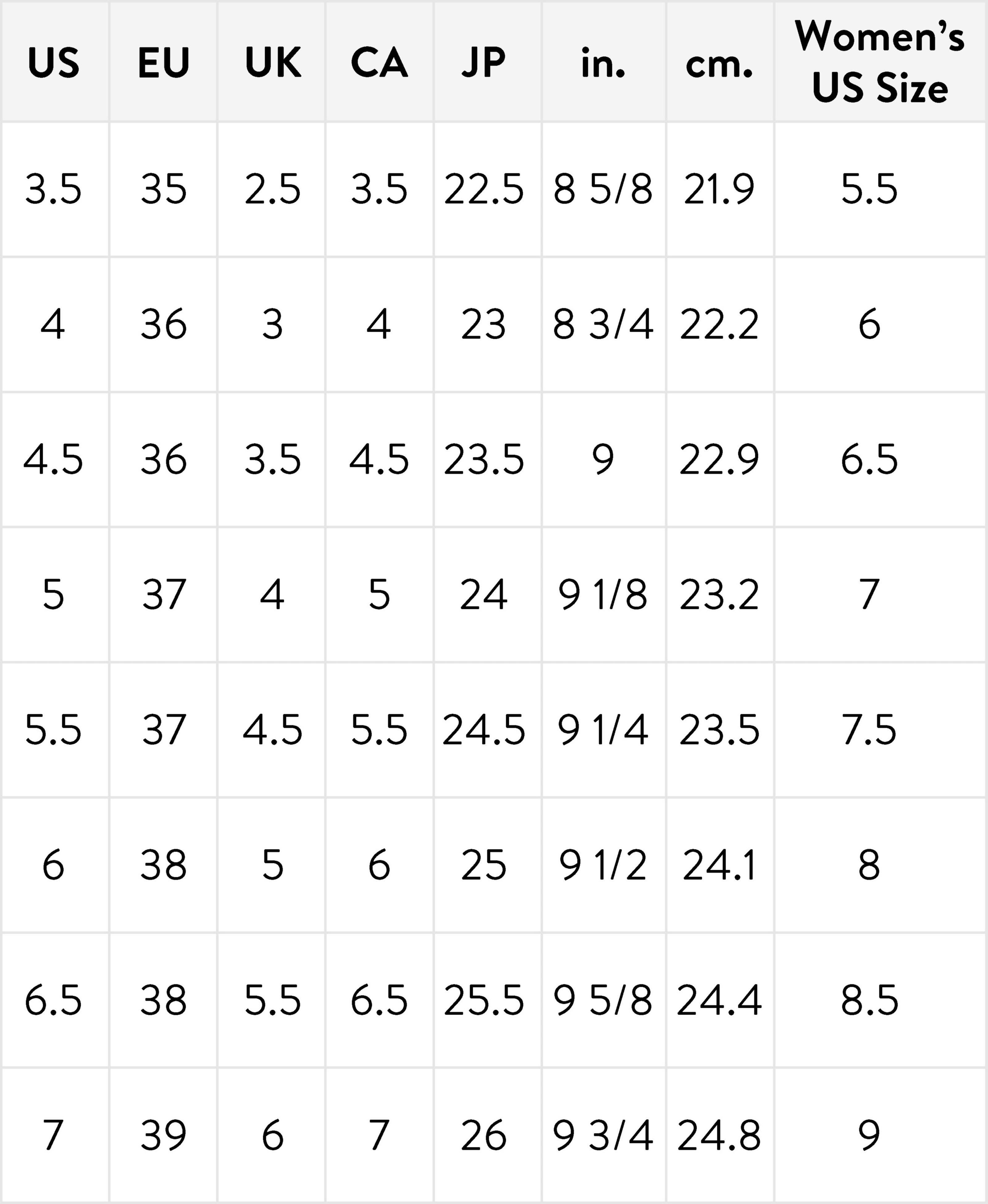 US conversions are listed next to a country's or region's nearest size equivalent. Shoe size conversions vary by manufacturer.